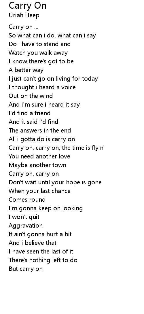 Carry on, carry on |