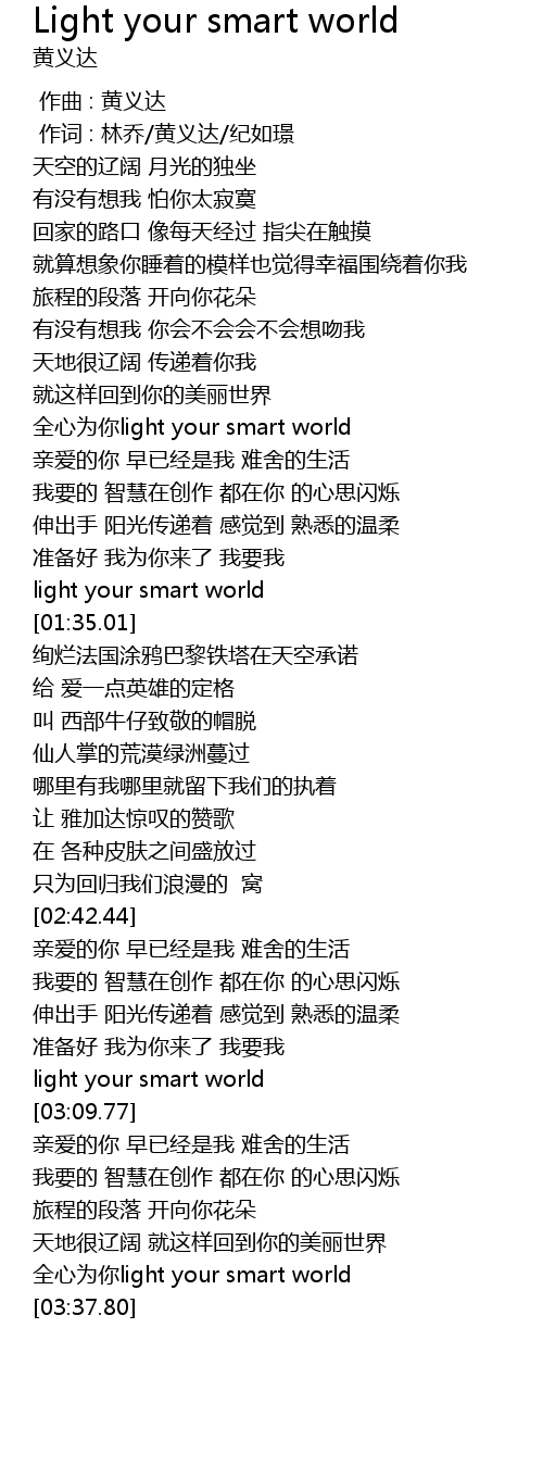 | [03:34.79] | quán xīn wèi nǐ light your smart world |