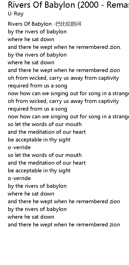 | [00:00.00] | Rivers Of Babylon ba bi lun de he |