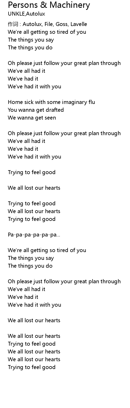 | 作词 : Autolux, File, Goss, Lavelle | |
