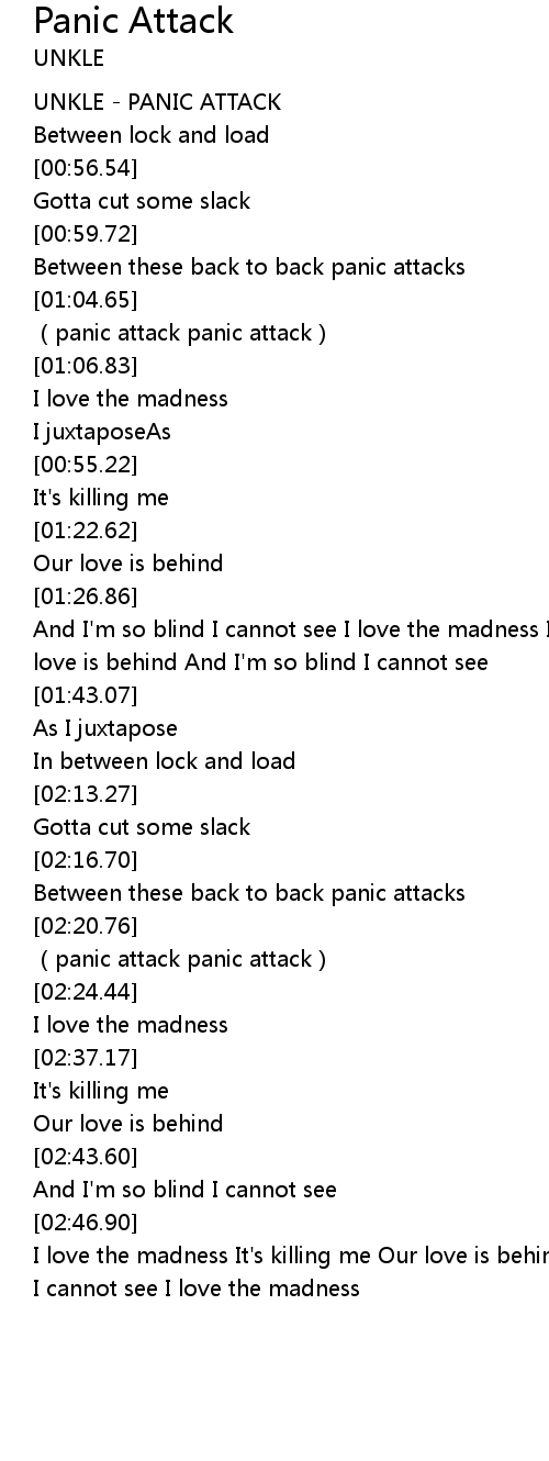 | [00:00.72] | UNKLE PANIC ATTACK |