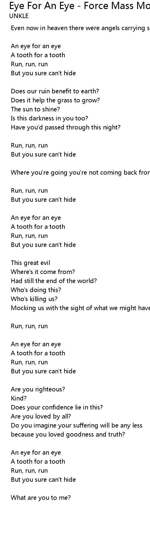 Eye For An Eye - Force Mass Motion Versus Dylan Rhymes Remix Lyrics