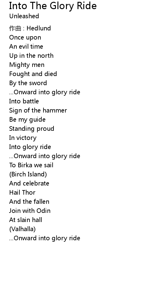 | Into glory ride | |