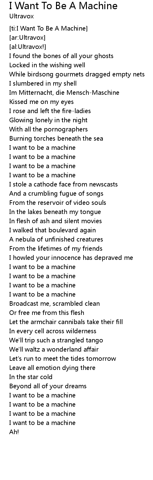 | [ti:I Want To Be A Machine] | |