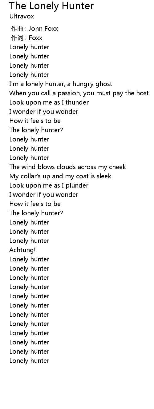| [00:42.89] | I' m a lonely hunter, a hungry ghost |