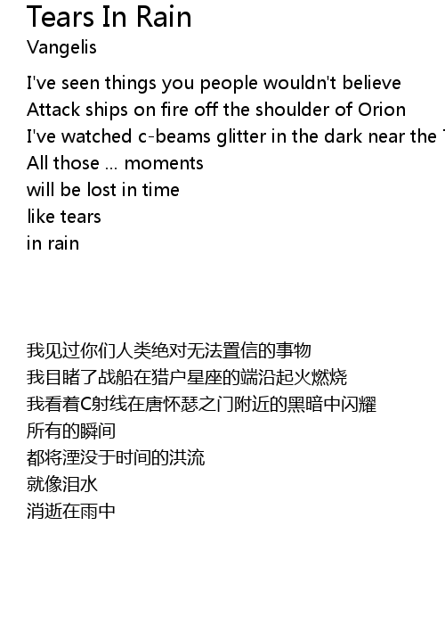 | Song | Tears In Rain |