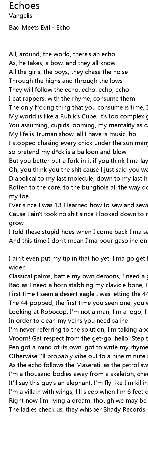 | Vroom! Get respect from the get-go, hello! Step to the echo, echo, echo | |