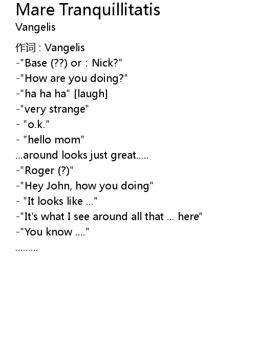 | Song | Mare Tranquillitatis |