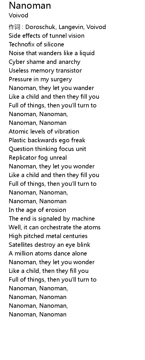 | 作词 : Doroschuk, Langevin, Voivod | |