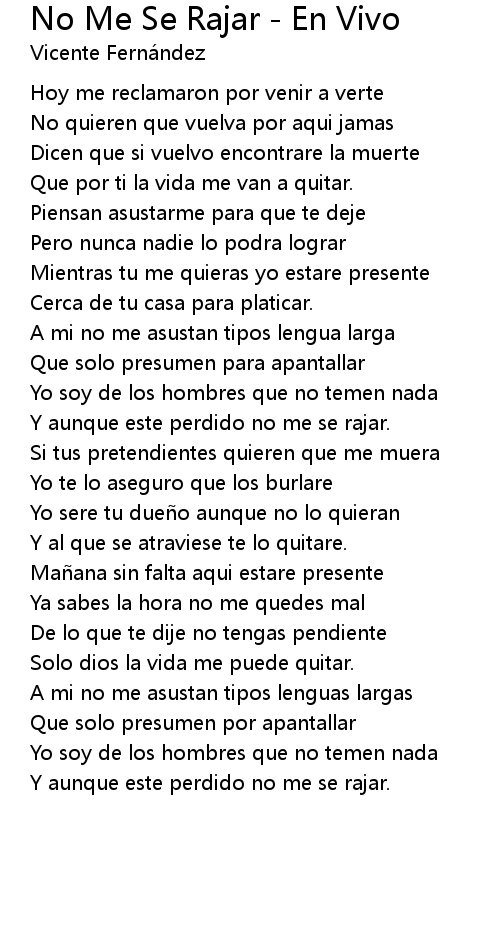 | Song | No Me Se Rajar - En Vivo |