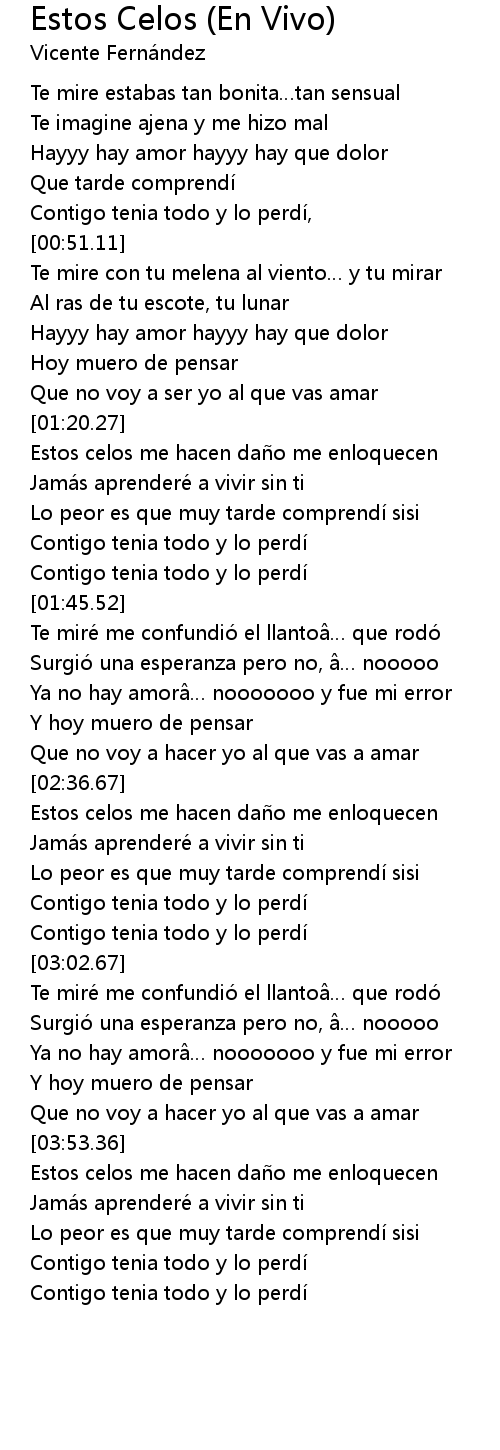 | [03:54.48] | Estos celos me hacen da o me enloquecen |
