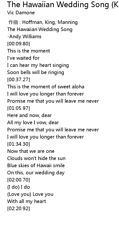 | [00:01.50] | The Hawaiian Wedding Song |