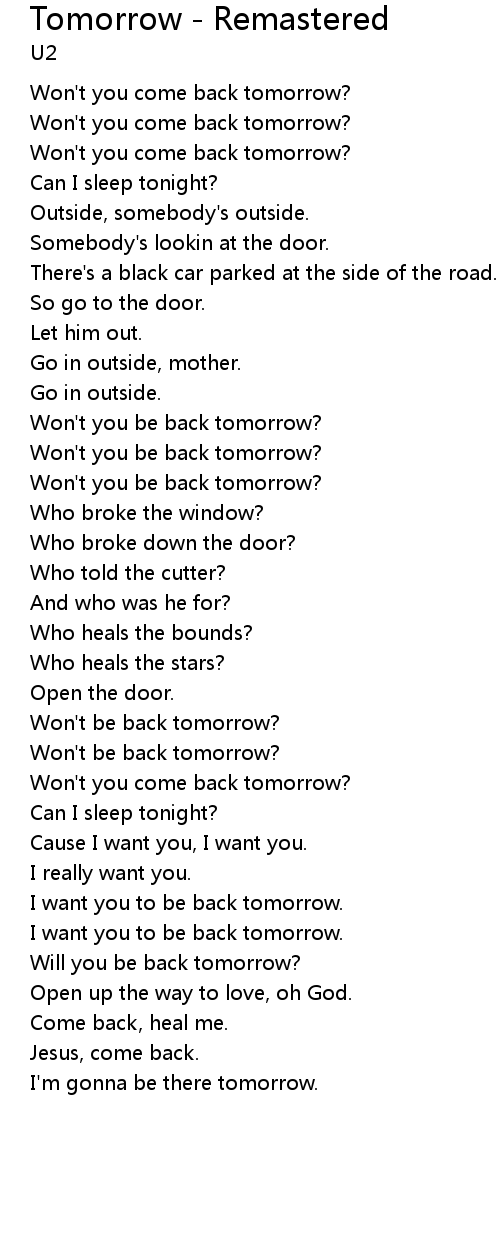 | Won't you come back tomorrow? | |