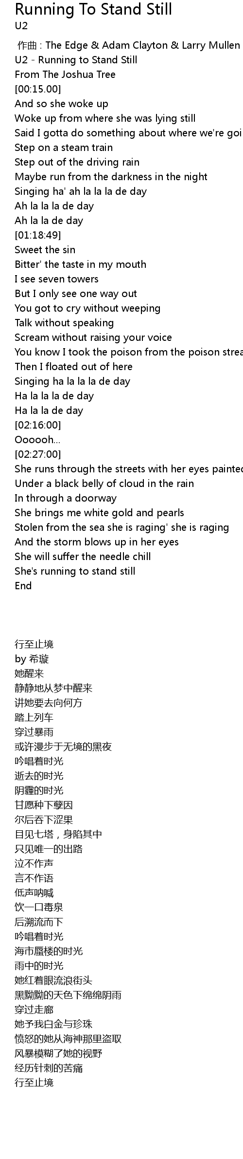 | [00:00.00] | 作曲 : The Edge & Adam Clayton & Larry Mullen & Bono |