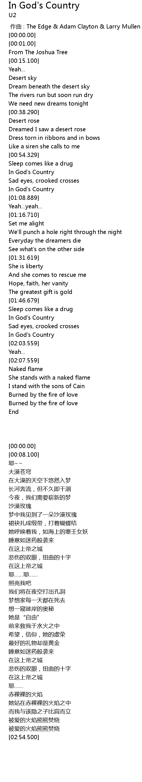 | [00:00.00] | 作曲 : The Edge & Adam Clayton & Larry Mullen & Bono |