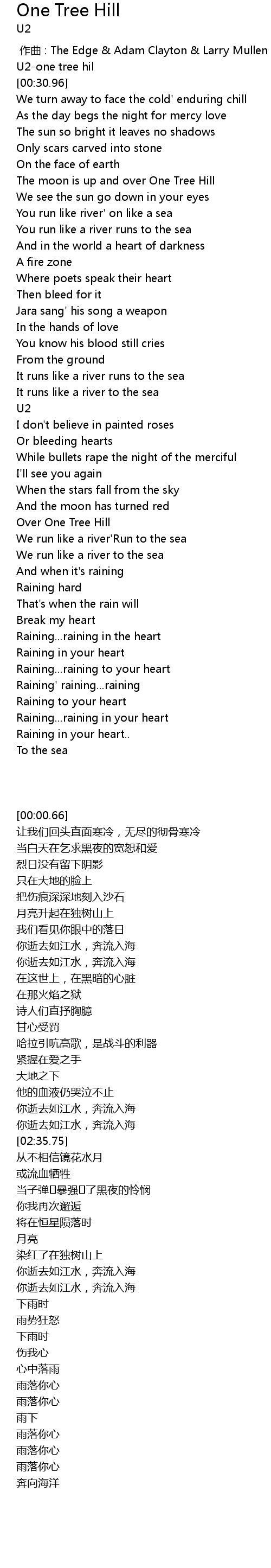 | [00:00.00] | zuo qu : The Edge Adam Clayton Larry Mullen Bono |