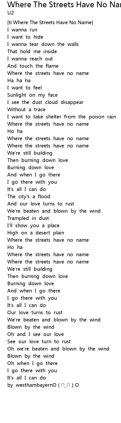 | [ti:Where The Streets Have No Name] | |