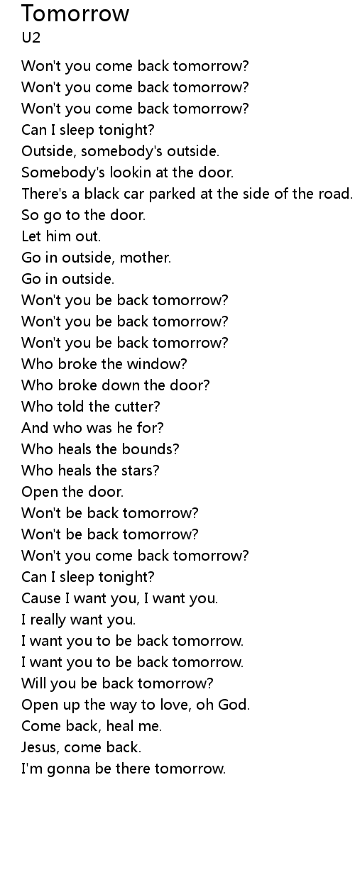 | Won't you come back tomorrow? | |