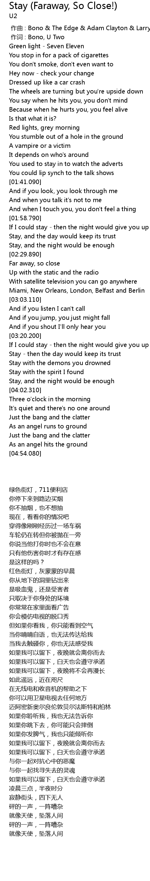 | [00:00.00] | zuò qǔ : Bono The Edge Adam Clayton Larry Mullen |