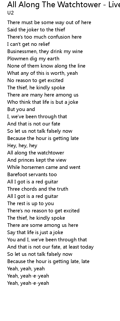 All Along The Watchtower - Live - Rattle & Hum Version Lyrics