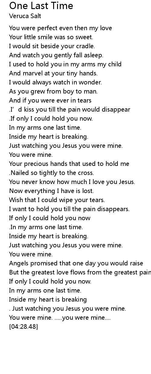| [02:12.72] | . Nailed so tightly to the cross. |