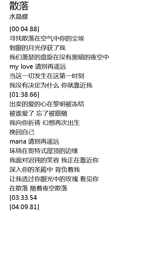 | [00:48.85] | 寻找散落在空气中你的尘埃 |