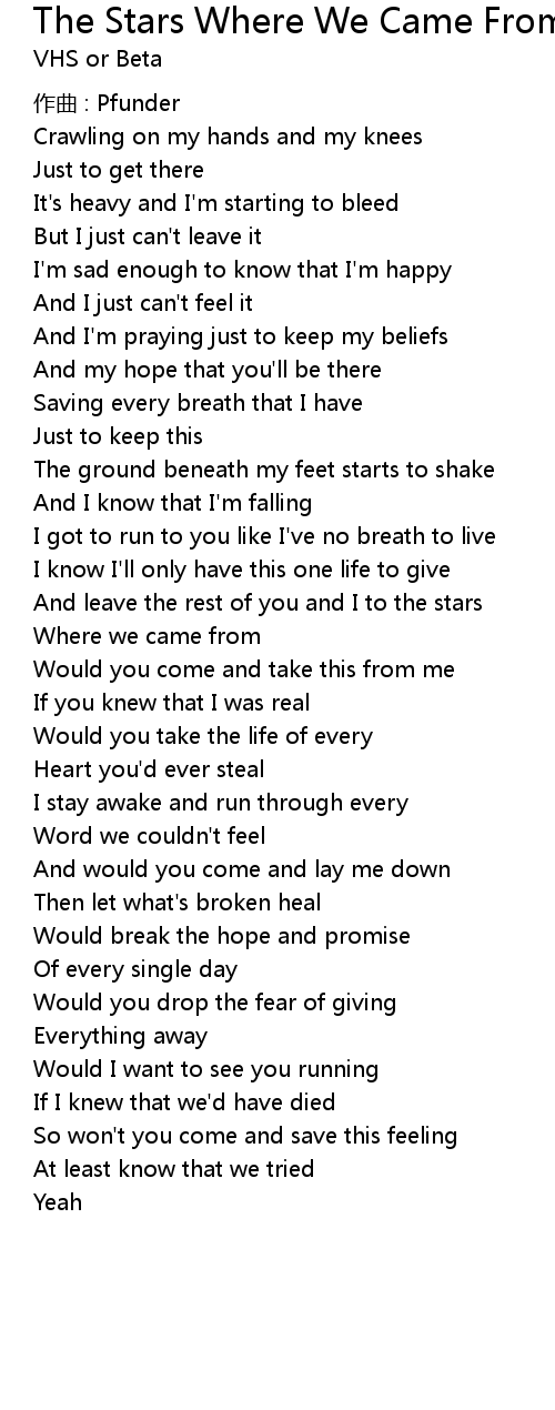 | Song | The Stars Where We Came From |