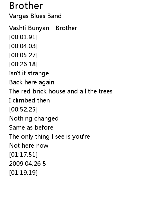 | [00:01.04] | Vashti Bunyan - Brother |