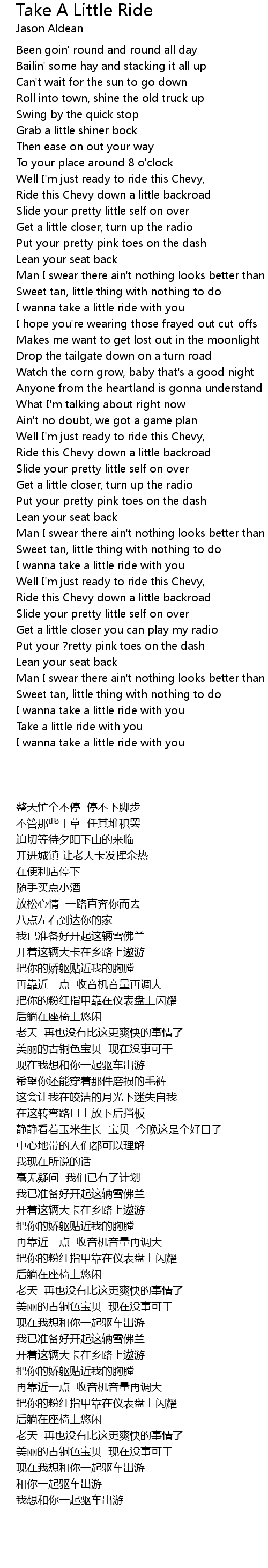 Take A Little Ride Lyrics