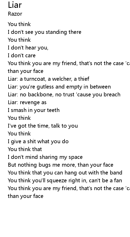 | You think you are my friend, that's not the case 'cause nothing bugs me more, than your face |
