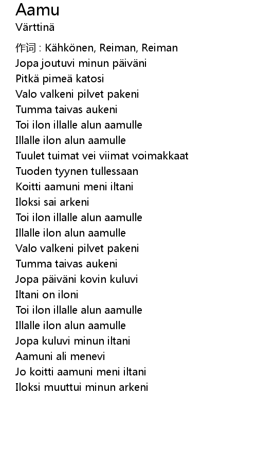 | 作词 : Kähkönen, Reiman, Reiman | |