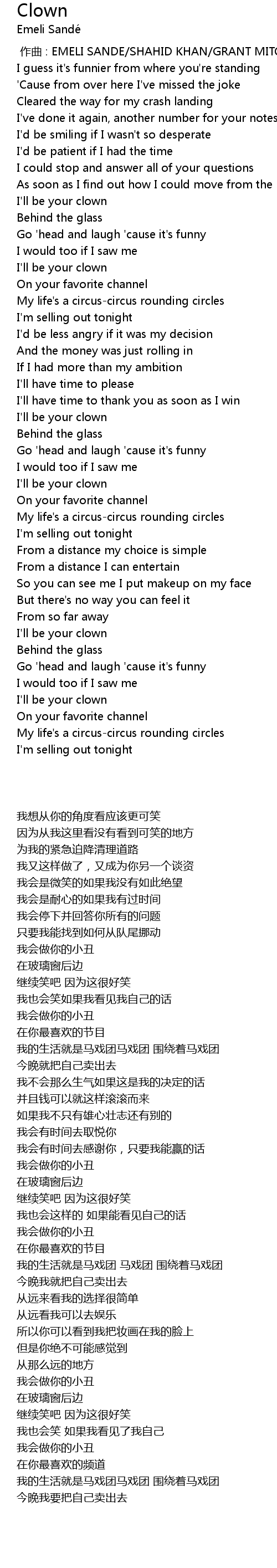 | [00:59.240] | I'll be your clown |