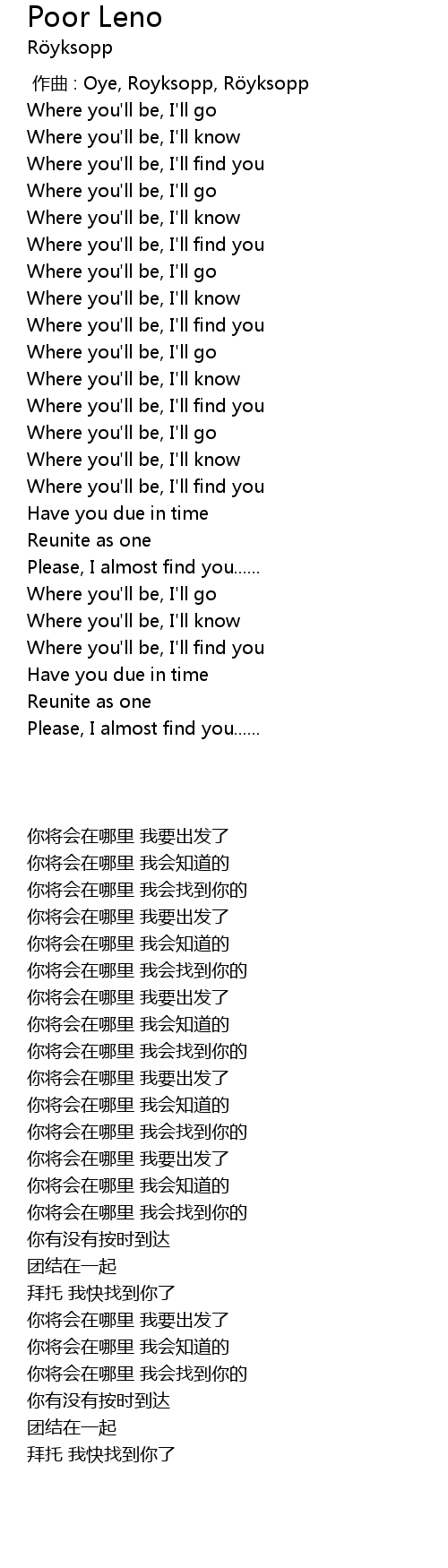 | [00:00.00] | 作曲 : Oye, Royksopp, Röyksopp |