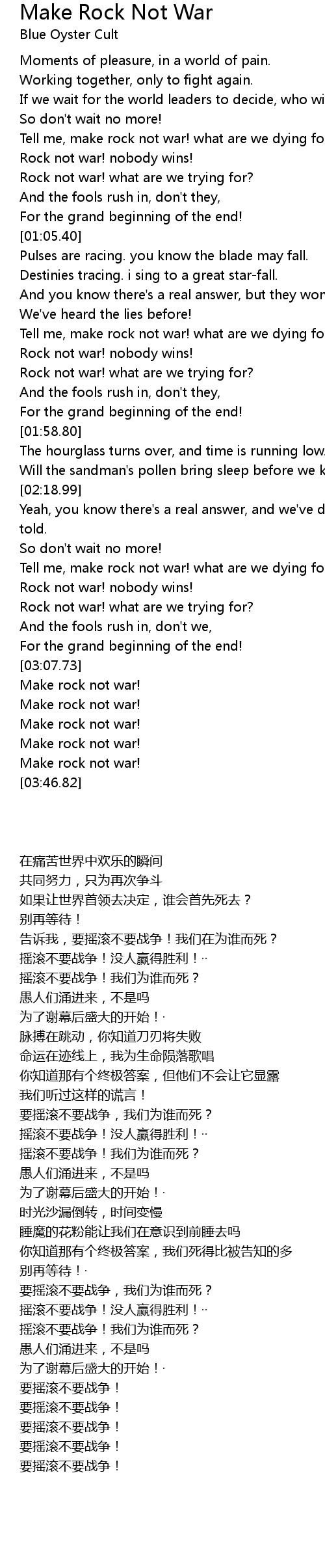 [01:38.80] Tell me, make rock not war! what are we dying for?
