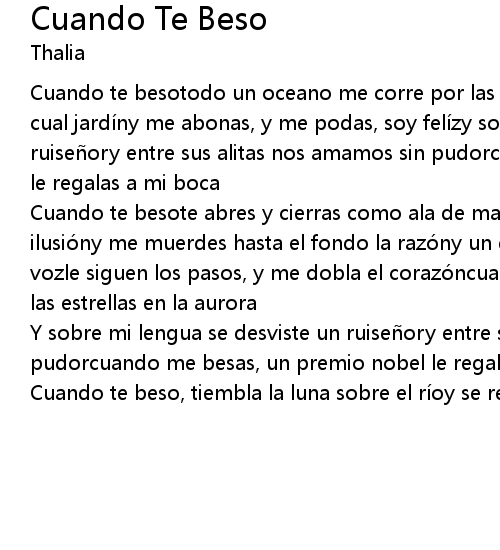 | Cuando te besote abres y cierras como ala de mariposay bautiza tu saliva mi ilusió ny me muerdes hasta el fondo la razó ny un gemido se desnuda y sale de tu vozle siguen los pasos, y me dobla el corazó ncuando me besas, se prenden todas las estrellas en la aurora | |
