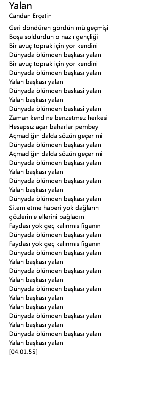 | [03:13.37] | Dü nyada lü mden ba kas yalan |