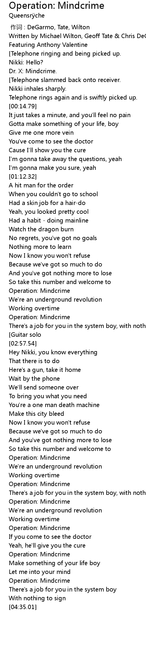 | [03:59.81] | Operation: Mindcrime |