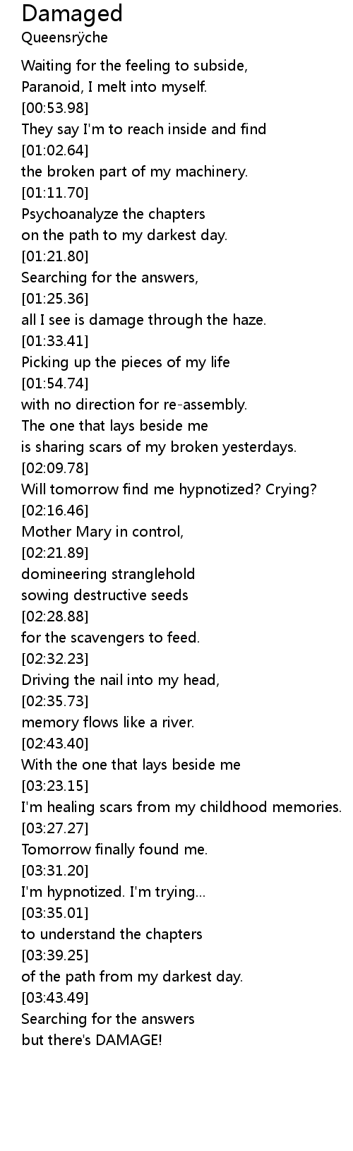 all I see is damage through the haze. |