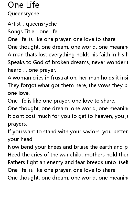 | [00:38.79] | One life, is like one prayer, one love to share. |