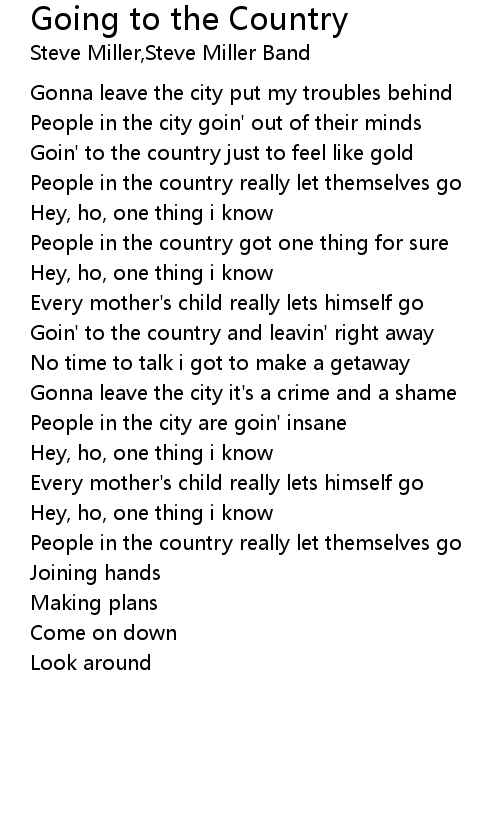 Goin' to the country and leavin' right away |