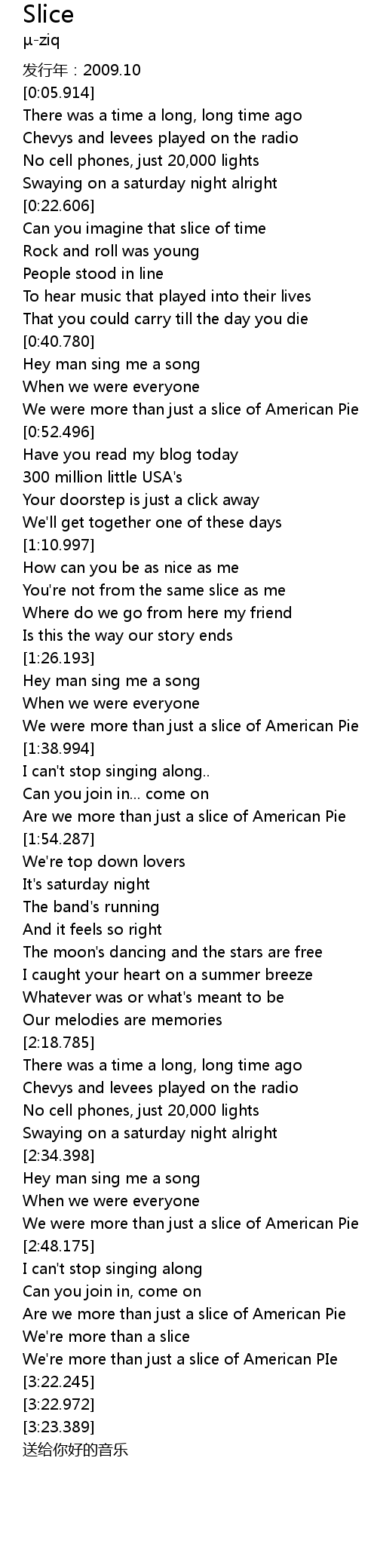 | [3:13.733] | We' re more than just a slice of American PIe |