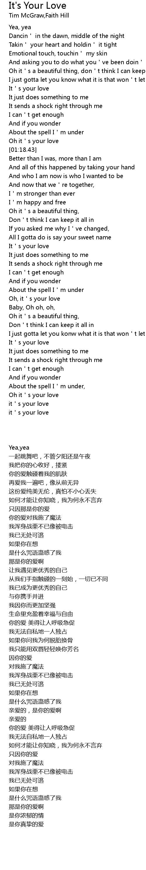 | [02:18.32] | Oh, it s your love |