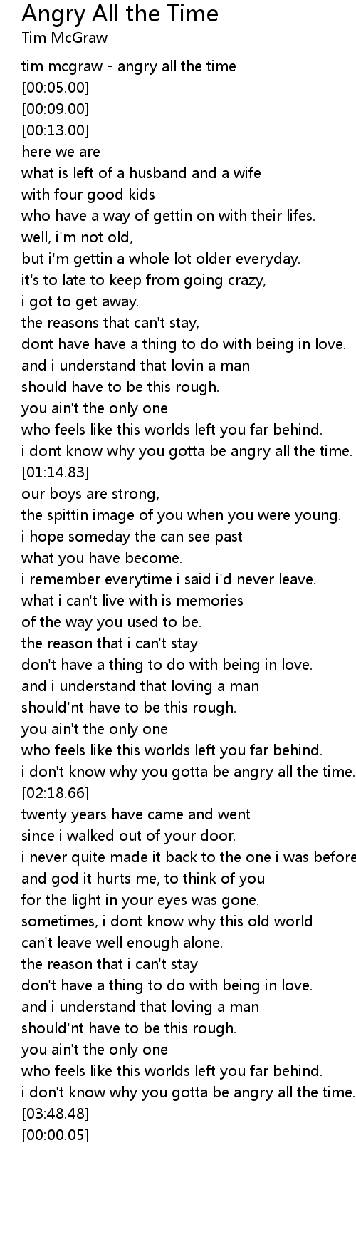 tim mcgraw - angry all the time |