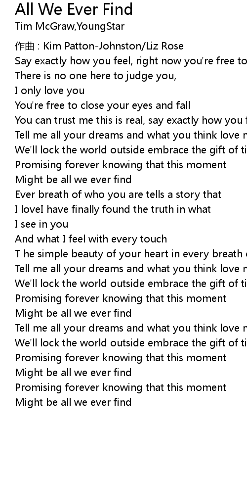 | Song | All We Ever Find |