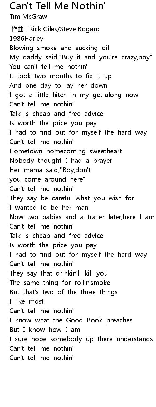 | [02:45.95] | Can' t tell me nothin' |