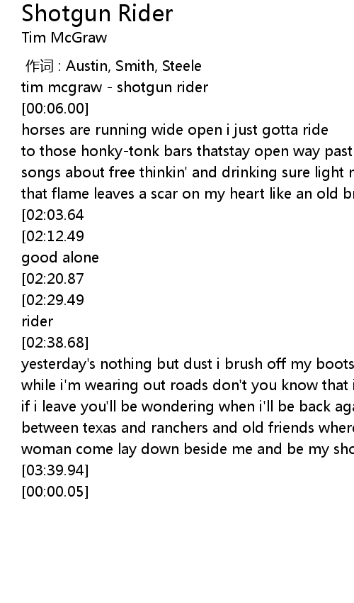 | [00:04.00] | tim mcgraw - shotgun rider |