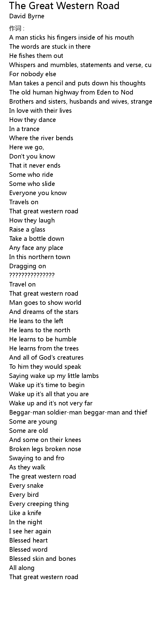 | Whispers and mumbles, statements and verse, curses and love songs | |