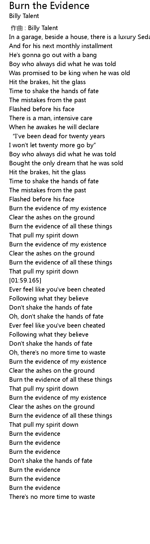 | [03:06.606] | Burn the evidence |