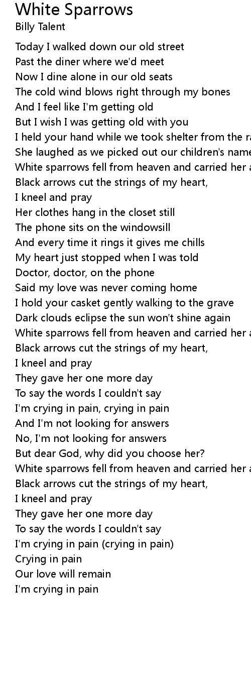 White sparrows fell from heaven and carried her away |
