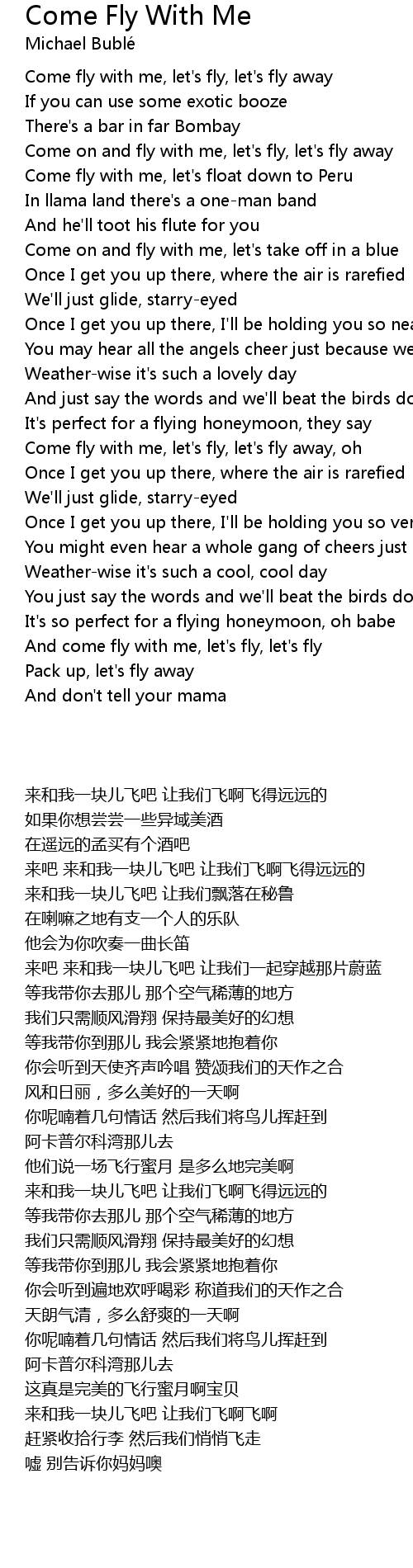 And come fly with me, let's fly, let's fly |